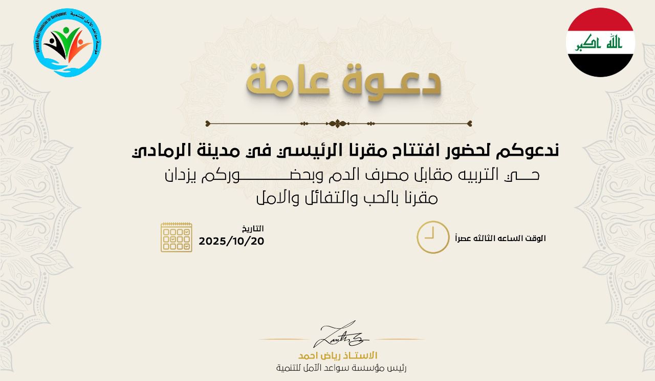 من قلب الأنبار “مؤسسة سواعد الأمل للتنمية تفتح أبوابها للوطن”