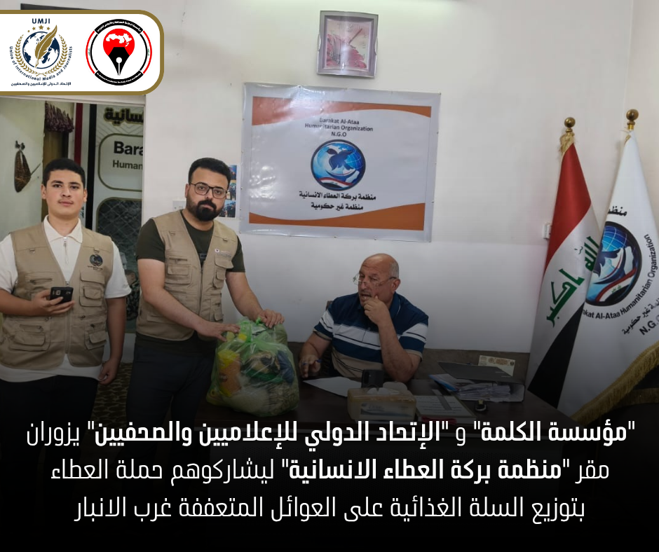 “مؤسسة الكلمة” و “الإتحاد الدولي للإعلاميين والصحفيين” يزوران مقر “منظمة بركة العطاء الانسانية” ليشاركوهم حملة العطاء